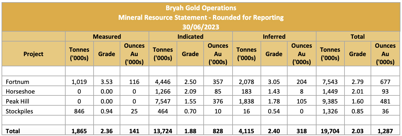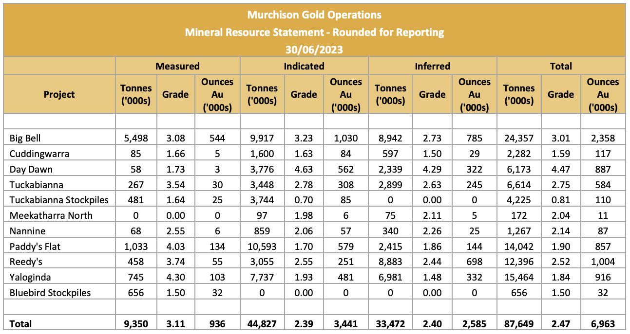 Table 1 - Mineral Resources Estimates on 30 June 2023