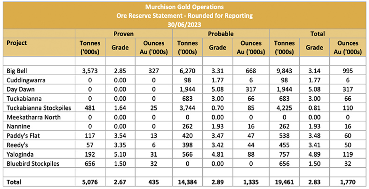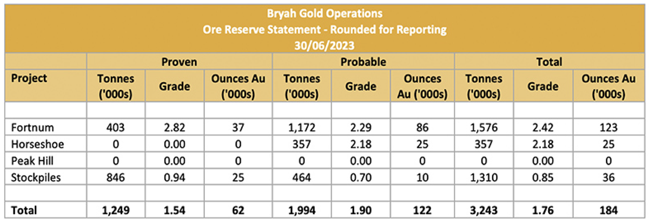 Table 2 - Ore Reserves as of 30 June 2023