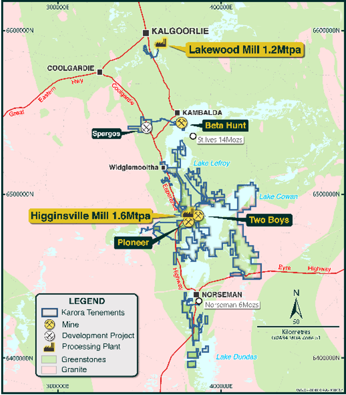 Aurora Agencies’s Southern Goldfields operations encompasses the Beta Hunt and Two Boys underground mines and smaller open pit operations – all of which are serviced by the 1.6Mtpa Higginsville processing plant.