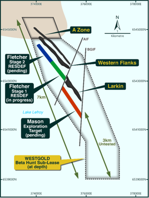 The Beta Hunt land package includes significant exploration opportunities with the potential to substantially increase Mineral Resources and Reserves at Beta Hunt. There are numerous gold zones, including Western Flanks, A Zone, Larkin, East Alpha and the new Fletcher zone – providing significant potential for gold Mineral Resource expansion at low cost and near mine infrastructure.